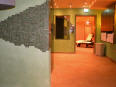 Boden: 30/30cm cottofarbenes Feinsteinzeug glasiert Wand: Marmorbruch-Mosaik und Servo-Art Wandgestaltung in Spachteltechnik